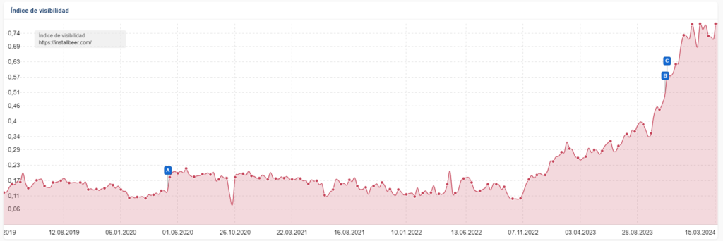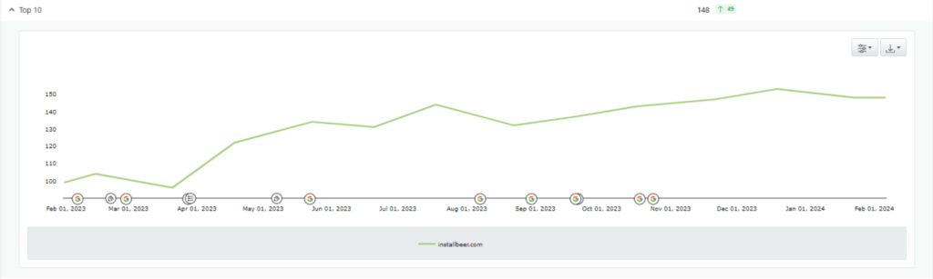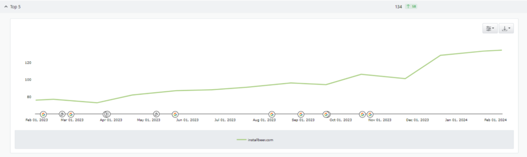 – Increased positioning for transactional keywords: We have achieved top rankings in search results for transactional keywords that are essential to the company, such as ‘beer tap rental,’ ‘beer dispenser,’ and ‘beer tap.’ This has increased Install Beer’s visibility among users with specific search intentions related to the products and services offered.